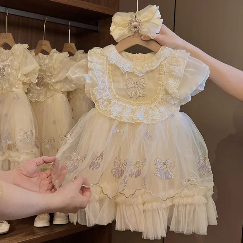 Available in two lovely colors, apricot and blue, this skirt offers versatility to suit various outfits. Whether paired with a cute top or layered under a dress, it's a must-have addition to any young fashionista's collection.