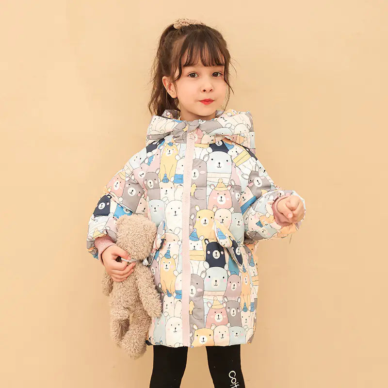 Designed with both functionality and fun in mind, this mid-length jacket is perfect for everyday wear, outdoor adventures, or special occasions. The lightweight yet warm design allows for easy movement, so your child can play freely and comfortably.