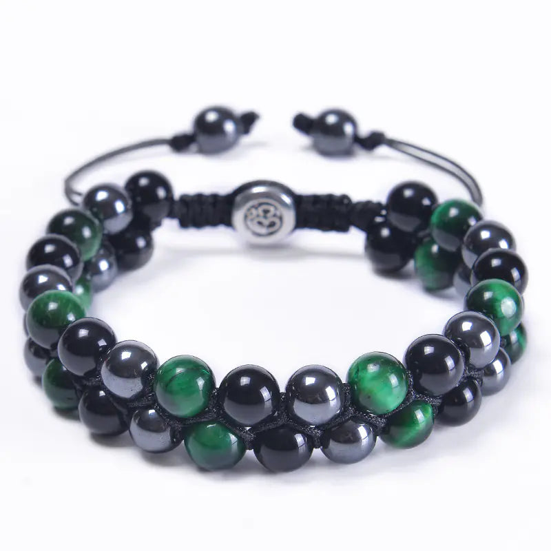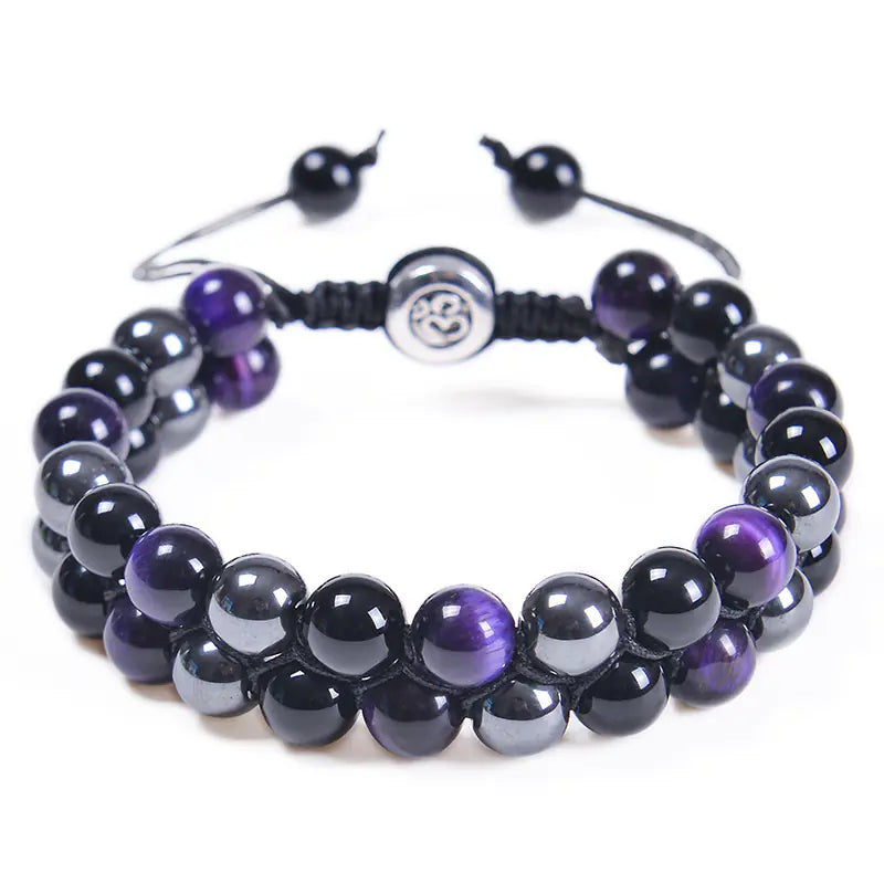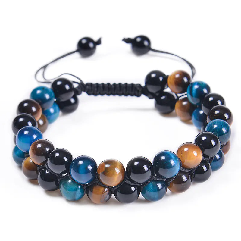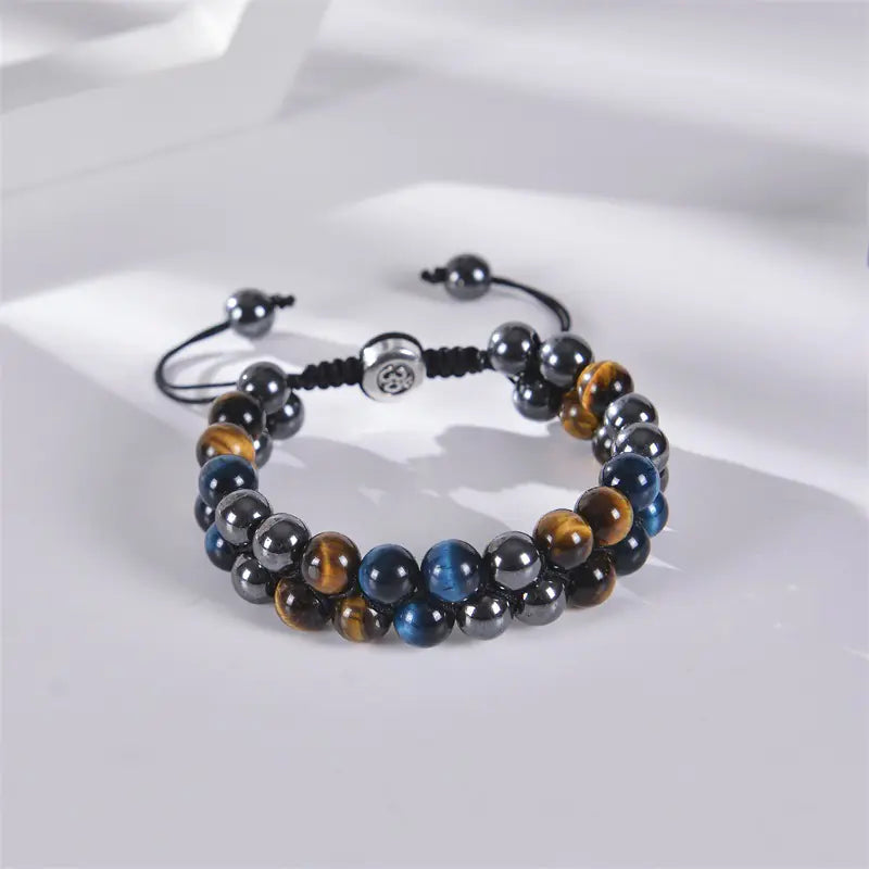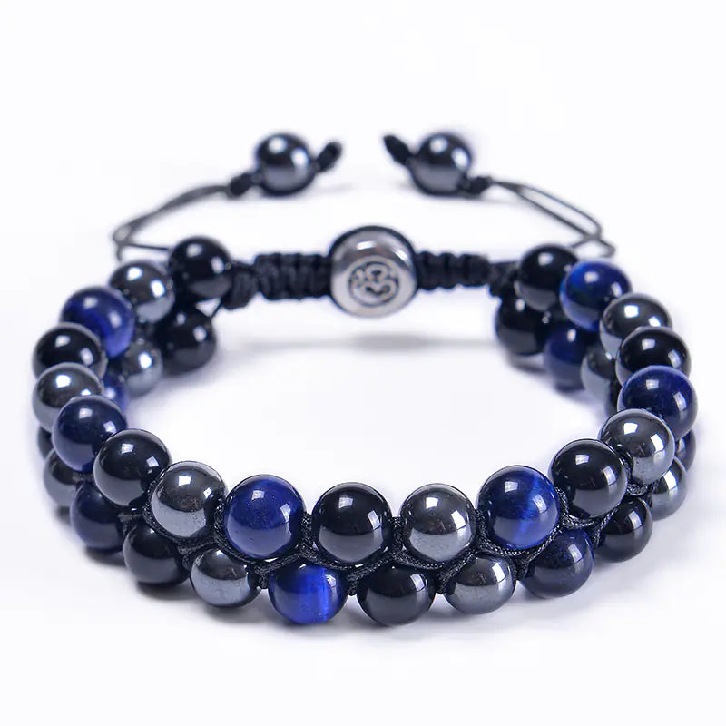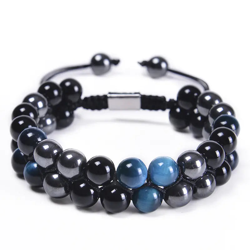 Discover the enchanting beauty of our handcrafted 8MM Blue Tiger Eye Stone and Black Magnet Bracelet. This exquisite piece features a unique double-layered design, expertly woven with natural stones to create a stunning accessory that is perfect for any occasion.