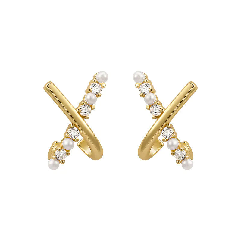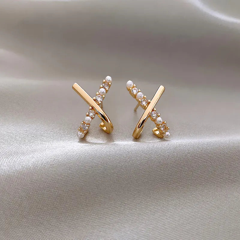 Elevate your style with our exquisite 925 Silver Needle X Cross Pearl Stud Earrings, perfect for those who appreciate a touch of sophistication. Crafted from high-quality copper and featuring a stunning 14K gold electroplating, these earrings are designed for the modern woman who embraces both elegance and trendiness.