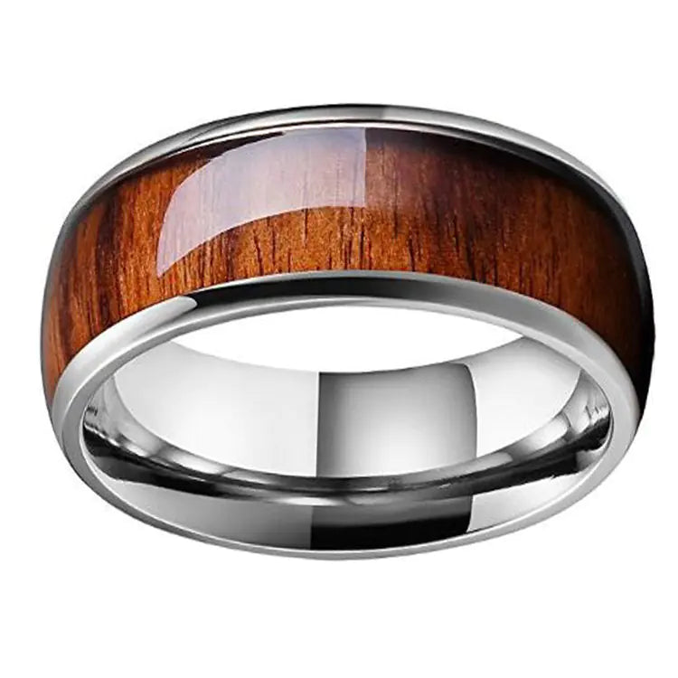 Fashion Tungsten Ring with Hawaiian Wood Inlay
