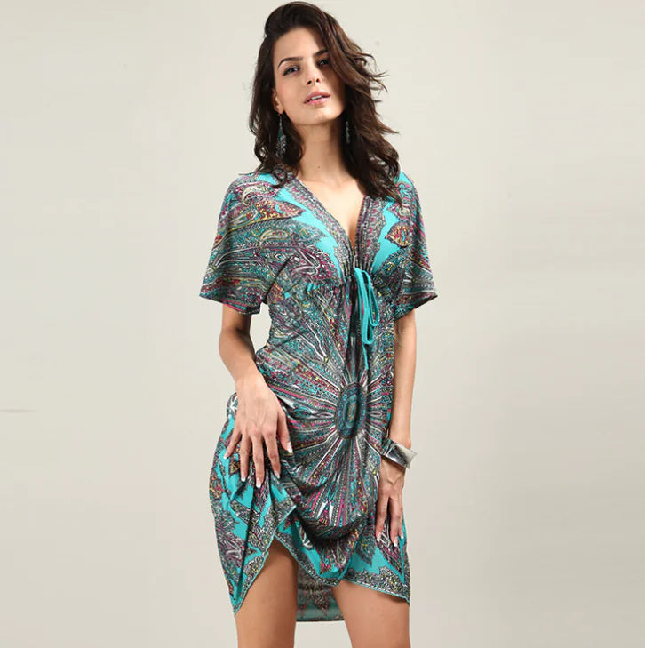 Embrace the essence of summer with our stunning Midi Skirt, a perfect blend of style and comfort that captures the vibrant spirit of the season. Designed with an elegant V-neck collar and chic bat sleeves, this piece is a must-have for beach outings or casual gatherings. The large swing type adds a playful touch, allowing you to move freely while exuding confidence.
