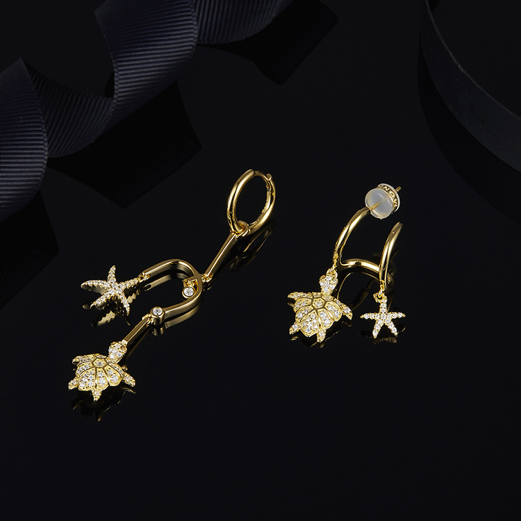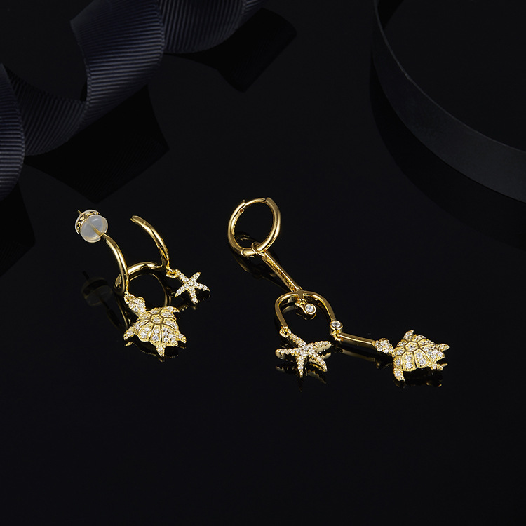 Elevate your style with these stunning asymmetrical earrings that embody the perfect mix of freshness and fashion. Crafted from high-quality aluminum alloy and plastic, these earrings are designed to turn heads and make a statement. The beautiful gold color and unique geometric round shape add a touch of elegance while the charming turtle and star elements bring a playful vibe to your look.