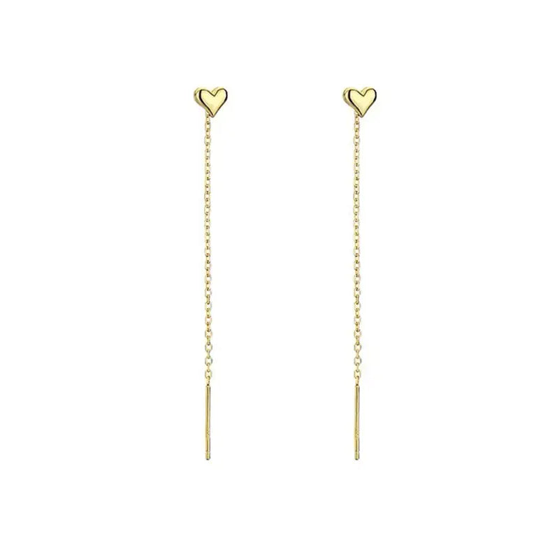 Featuring a beautiful heart shape, these earrings are available in two enchanting colors: Gold and Silver. The sleek design is complemented by a long tassel that sways gently with your movements, capturing the light and turning heads wherever you go.