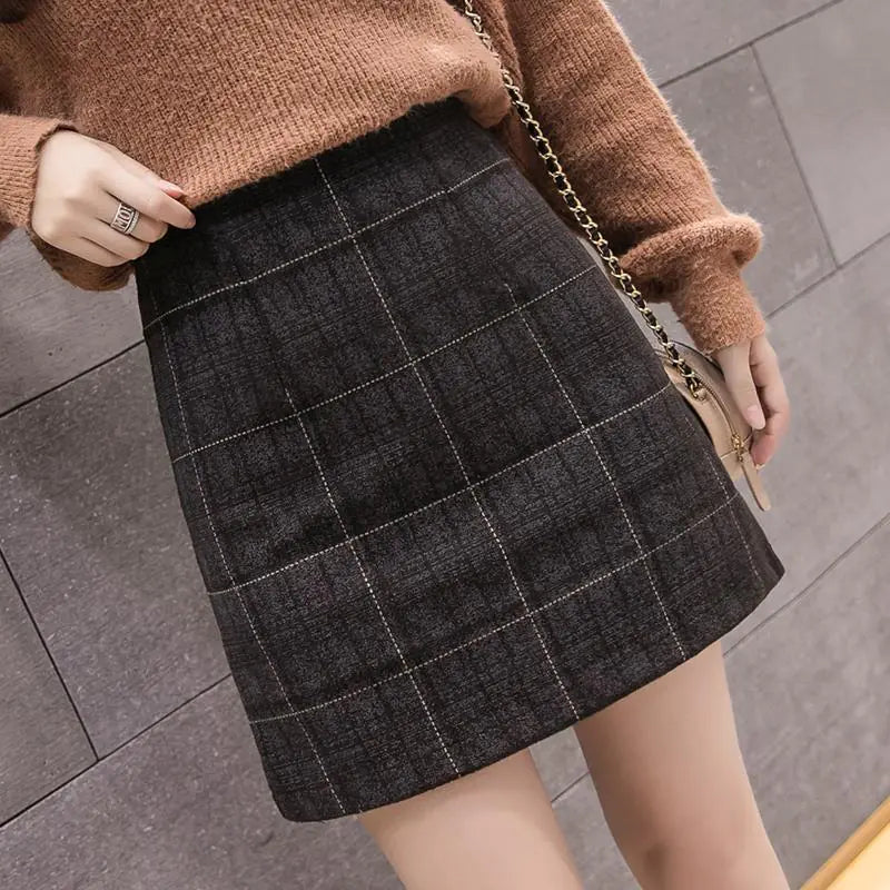 Women's High Waist Slim Plaid Woolen Fashion Skirt